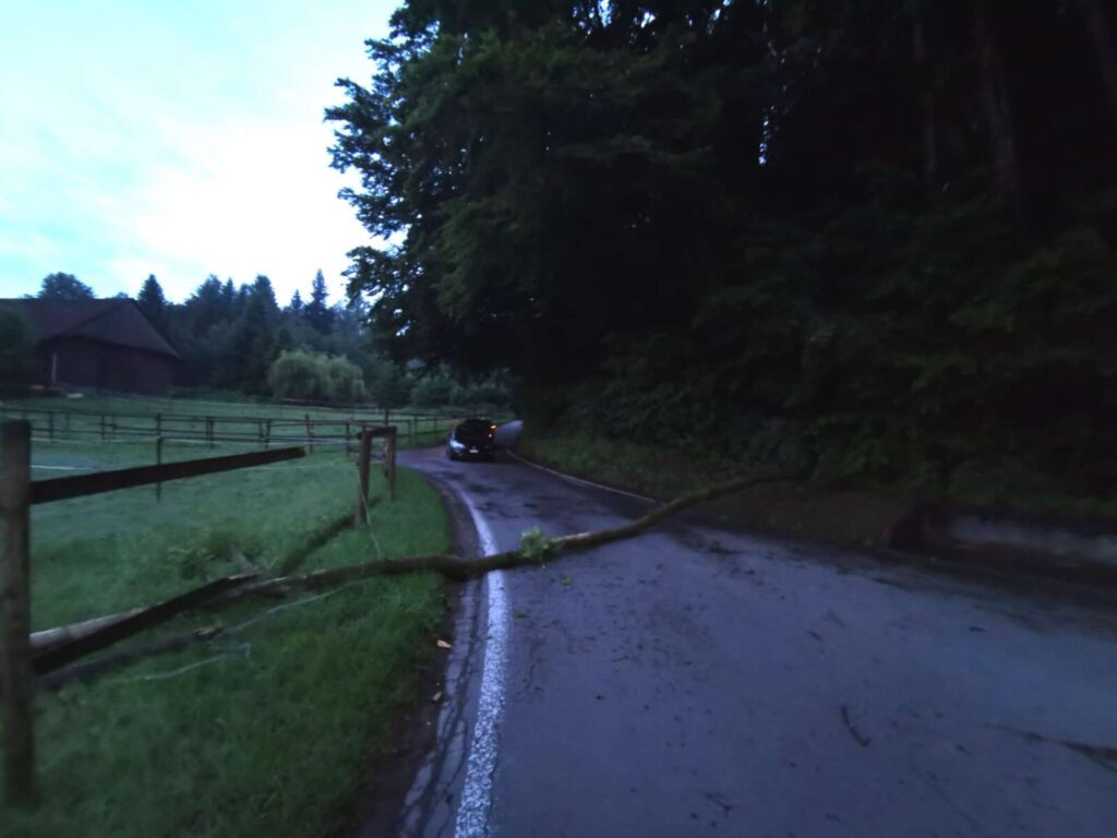 Seitens Einsatzleitzentrale wurde die Meldung ausgelöst, dass im Wald, zwischen Schaubern und St. Erhard, Kreuzung Sennhof, ein umgestürzter Baum die Strasse blockierte. Die Kommandogruppe sperrte kurz den besagten Abschnitt ab und räumte die Strasse mittels Einsatz der Motorsäge.