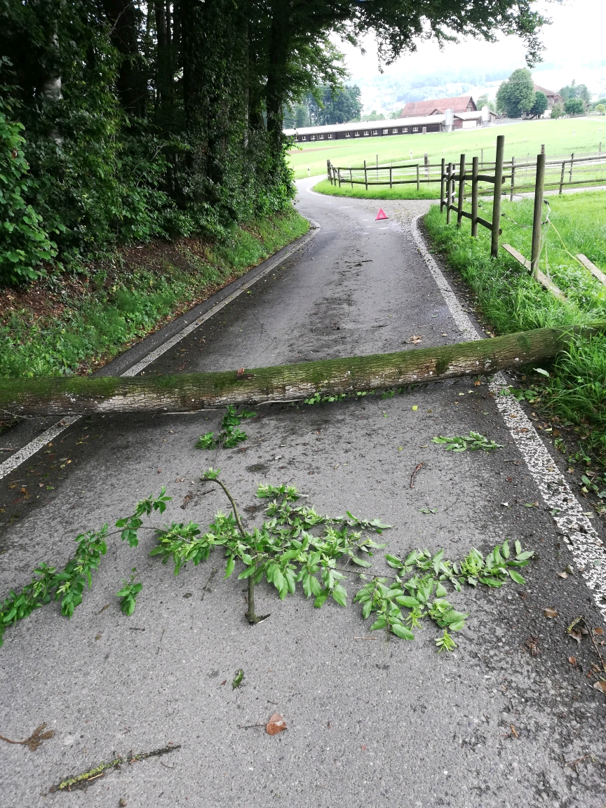 Am 16. Juni 2019 versperrte nach einem Sturm ein Baum die Schaubernstrasse. Wir wurden am Sonntag morgen um 10.14 Uhr alarmiert.