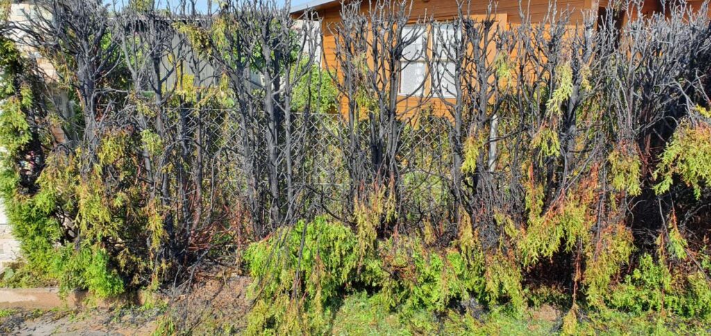 Brand von einer Tujahecke im Eichenweg St. Erhard. Der Branbd konnte durch die Nachbarschaft vor Eintreffen der Feuerwehr selber gelöscht werden. Kontrolle mittels Wärmebildkamera und Nachwässerung ab TLF.