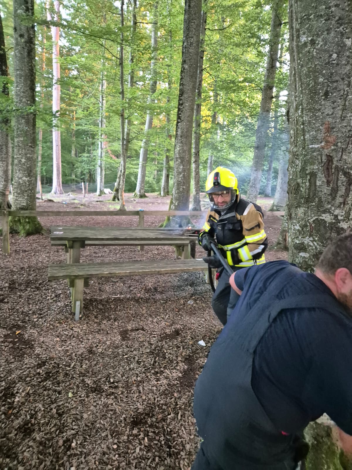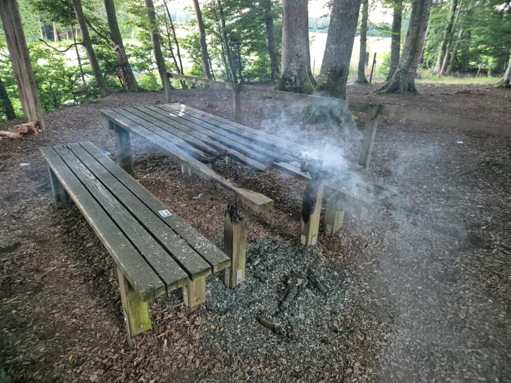 Was die Einsatzkräfte erwartete, kann eigentlich nur mit einem Kopfschütteln und dem Beschrieb „ohne Worte“ abgetan werden. Einfach mutwillige Zerstörung. Mal eben husch auf einem Holztisch grillieren…