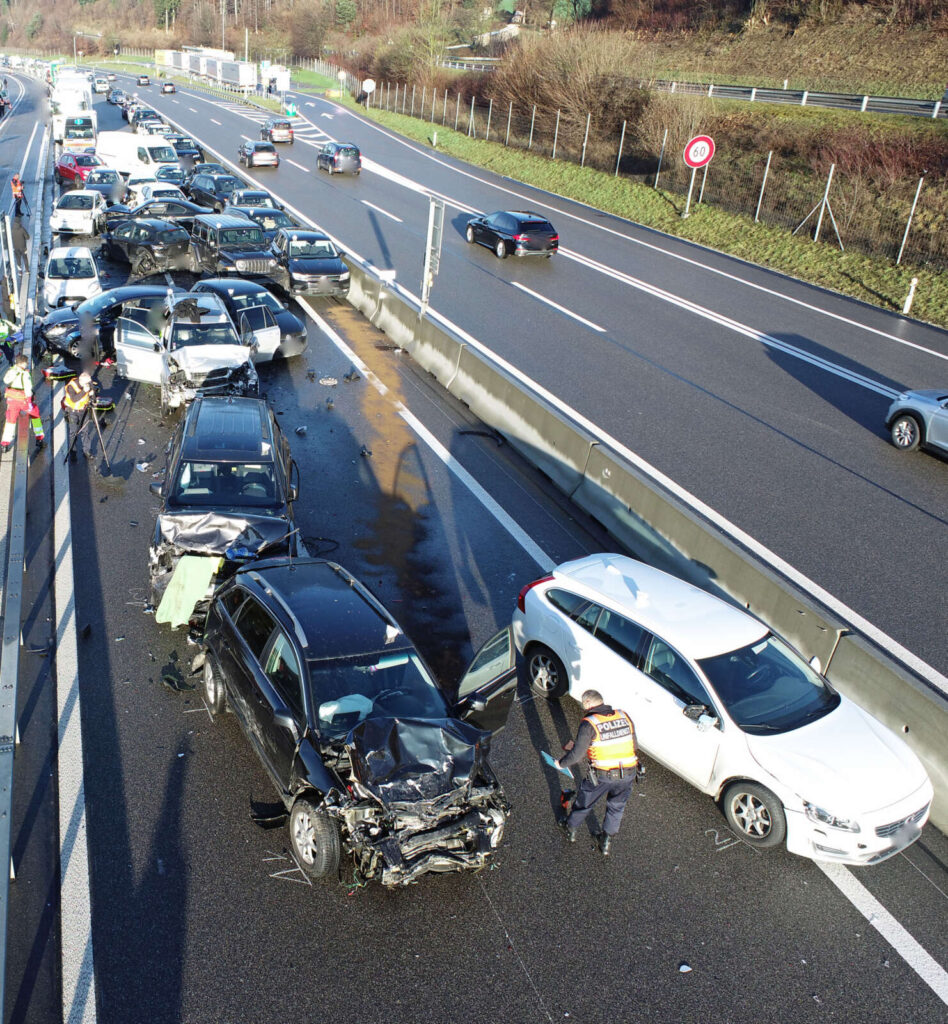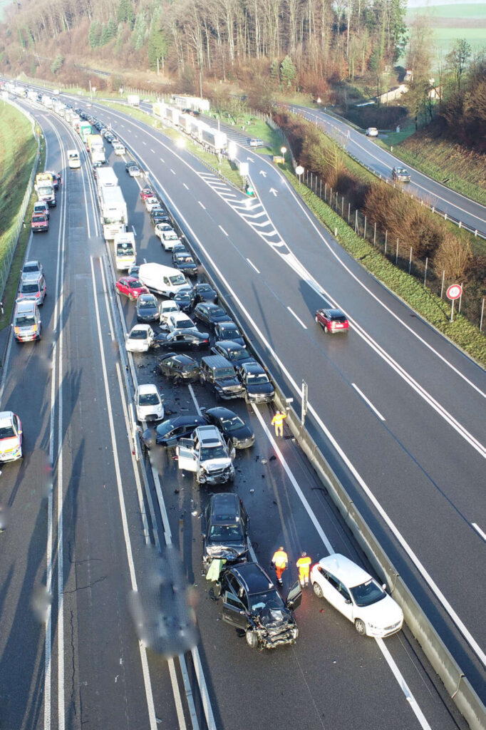 Am Freitag, 30. Dezember 2022, kurz nach 08:30 Uhr kam es auf der Autobahn A2 in Knutwil, Fahrtrichtung Süden, zu einer Massenkarambolage. Beteiligt waren insgesamt 23 Fahrzeuge. Acht Personen wurden ab der Unfallstelle durch mehrere Ambulanzfahrzeuge und ein Rettungshelikopter in umliegende Spitaler verbracht. Alle anderen Personen wurden durch Transportfahrzeuge an einen Sammelplatz gefahren, wo sie betreut wurden. Insgesamt begaben sich später weitere 15 Personen in ärztliche Behandlung. Zum Verletzungsrad der einzelnen Personen liegen keine Erkenntnisse vor.