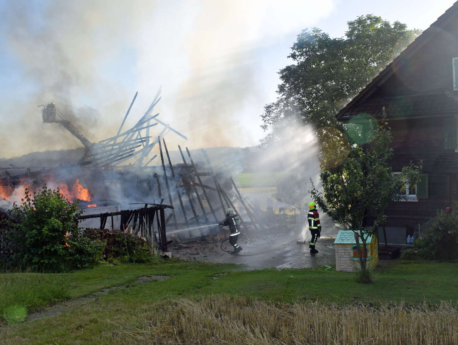 Am Dienstag, 7. Juli 2020, 07:08 Uhr, wurde der Polizei gemeldet, dass an der Bernstrasse in Oberkirch eine Scheune in Brand geraten sei. Die Einsatzkräfte konnten ein vollständiges Abbrennen der Scheune nicht verhindern. Tiere befanden sich keine in der Scheune. Durch die Feuerwehr konnte ein Übergreifen der Flammen auf ein angrenzendes Wohnhaus verhindert werden. Aus diesem wurden zwei Personen evakuiert und betreut. Verletzt wurde beim Brand niemand.