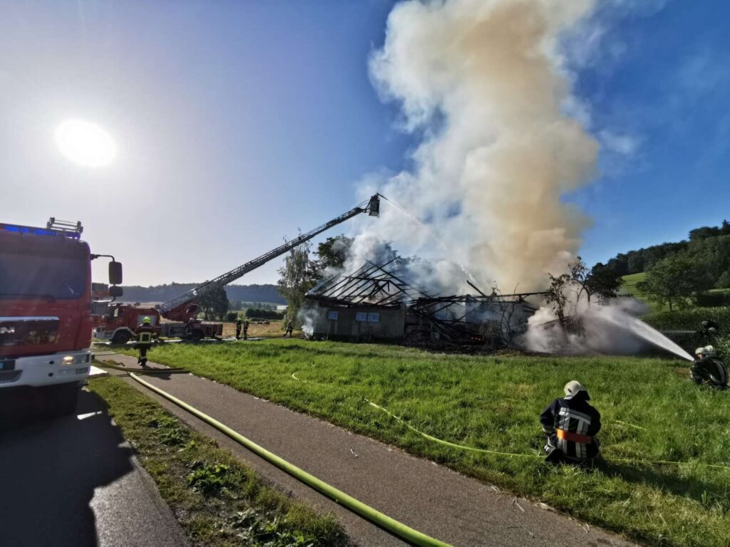 Heute Dienstag geriet an der Bernstrasse in Oberkirch eine Scheune in Brand. Tiere befanden sich keine im Gebäude. Dieses wurde durch das Feuer vollständig zerstört. Das angrenzende Wohnhaus konnte geschützt werden. Verletzt wurde niemand. Die Brandursache ist Gegenstand der laufenden Ermittlungen.