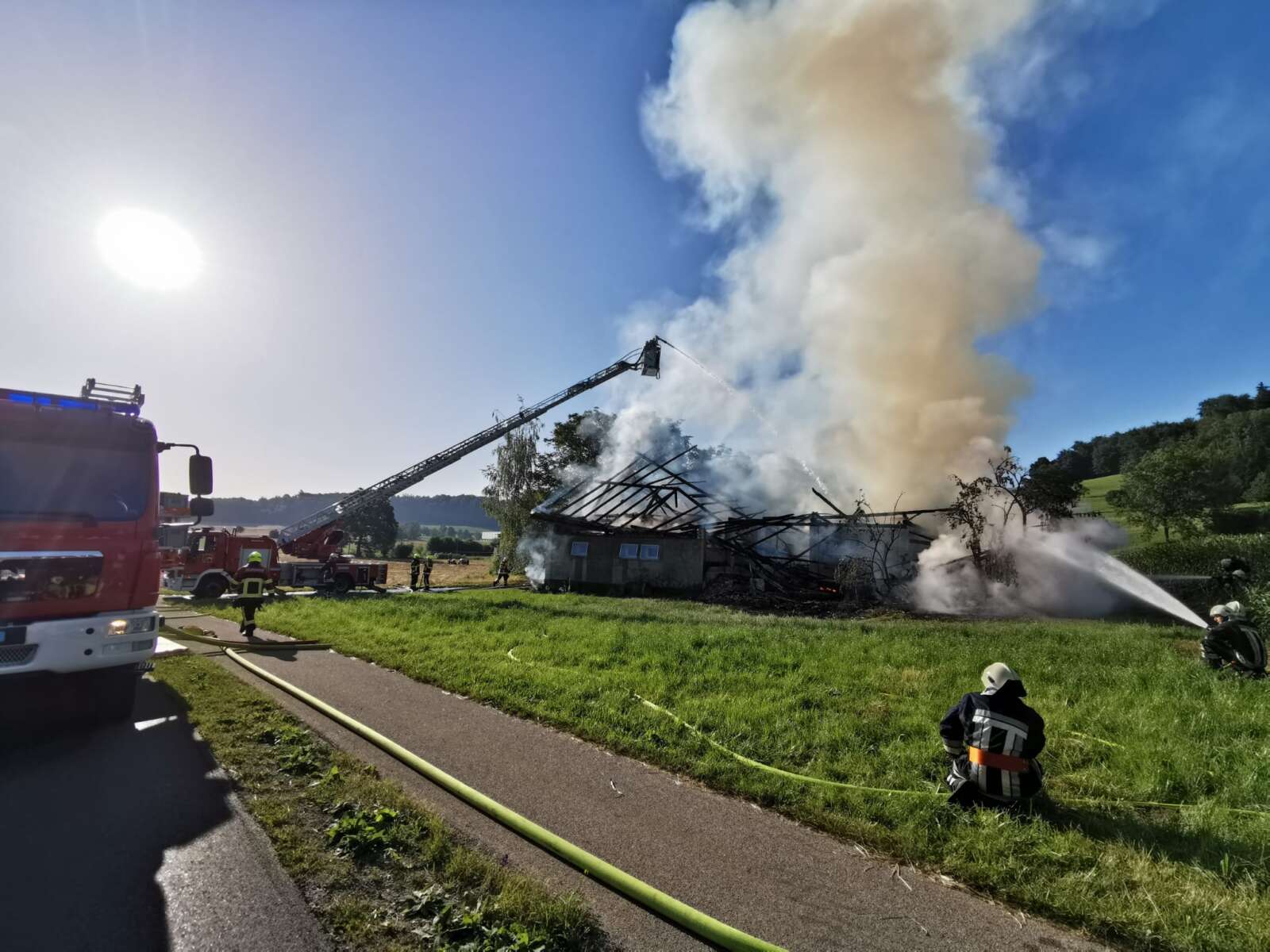Im Einsatz standen rund 80 Angehörige der Feuerwehren Knutwil-Mauensee und Region Sursee (FRS). Die FRS wird immer bei Alarmierung Brand Gross mit der Autodrehleiter zur Unterstützung aufgeboten.