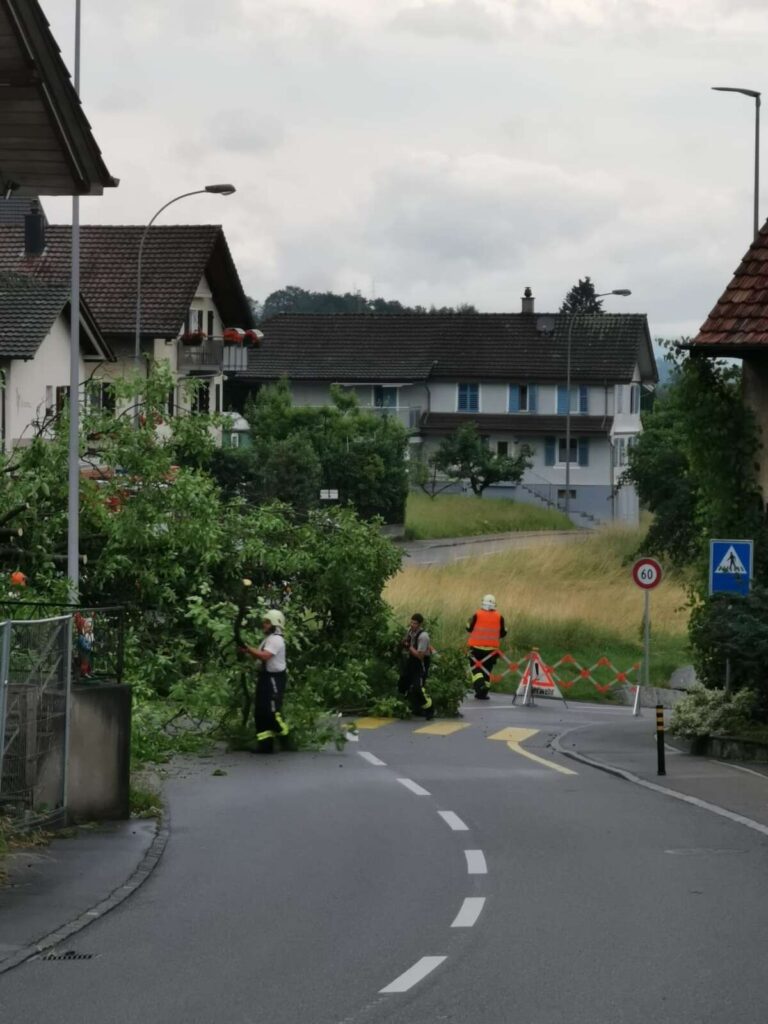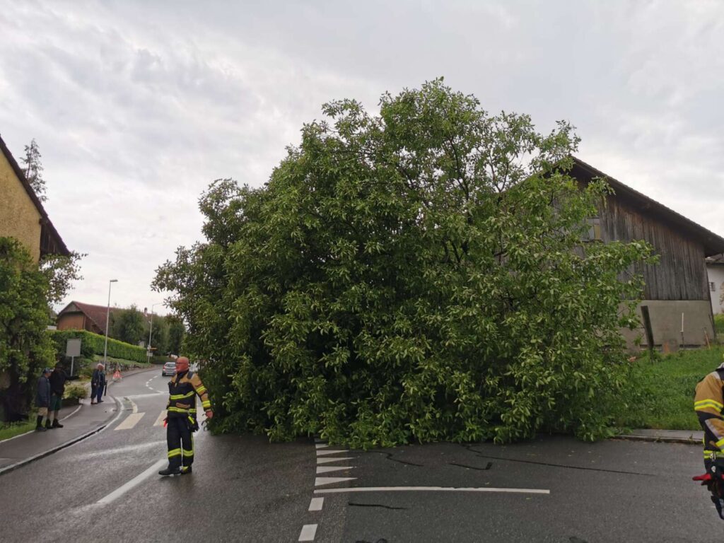 Am Dienstagabend wurde der Kanton Luzern wieder von heftigem Unwetter heimgesucht. Vor allem die Ämter Sursee und Willisau waren zum Teil heftig betroffen, diverse Feuerwehren standen im Dauereinsatz. Unser Gemeindegebiet kam mit einem blauen Auge davon, grössere Schäden waren, bis auf wenige kleinere Meldungen, gottseidank ausgeblieben. Ein umgestürzter Baum, welcher die Kantonsstrasse Knutwil Richtung Büron blockierte, war das einzige nennenswerte Ereignis, welcher unsere Wehr längere Zeit beschäftigte. Die Strasse wurde absignalisiert, der Verkehr tw. einstreifig geführt werden, bis die Unfallstelle wieder geräumt war. Die Abarbeitung der Schadensmeldungen dauerten bis in die Abendstunden.