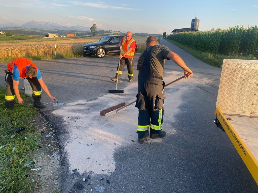 An beiden Fahrzeugen entstand erheblicher Sachschaden. Die Strasse wurde kurzfristig durch die FW Knutwil-Mauensee gesperrt und eine Umleitung eingerichtet, die auslaufenden Flüssigkeiten mit Ölbinder aufgefangen sowie die Strasse von Trümmerteilen gereinigt. Im Einsatz stand ein Teil der Kdo Gruppe mit 6 AdF’s.