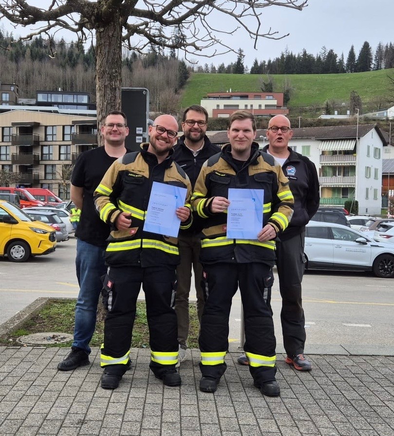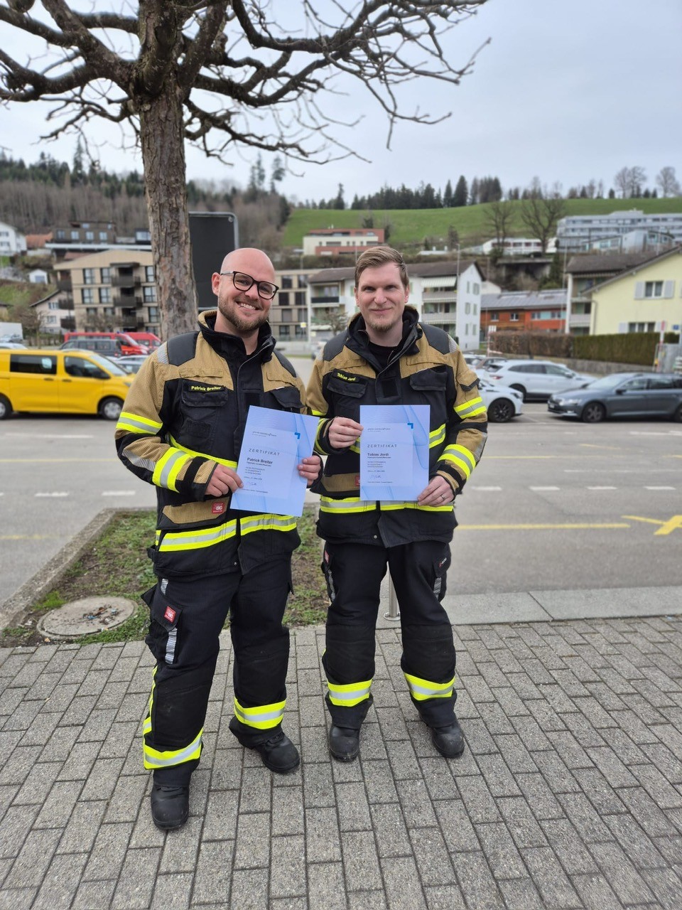 Wir gratulieren Patrick und Tobias zum erfolgreichen Abschluss des Kurses und freuen uns, sie im Kader unserer Wehr willkommen zu heissen.