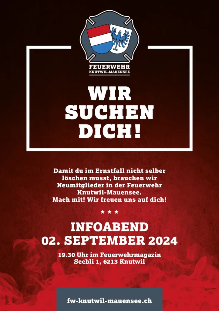 Suchst du nach einer sinnvollen Herausforderung? Dann werde Mitglied bei der Feuerwehr Knutwil-Mauensee! Ob du mehr über unsere Arbeit erfahren oder direkt in die Welt der Feuerwehr einsteigen möchtest – unser Informationsabend ist der perfekte Einstieg für dich.